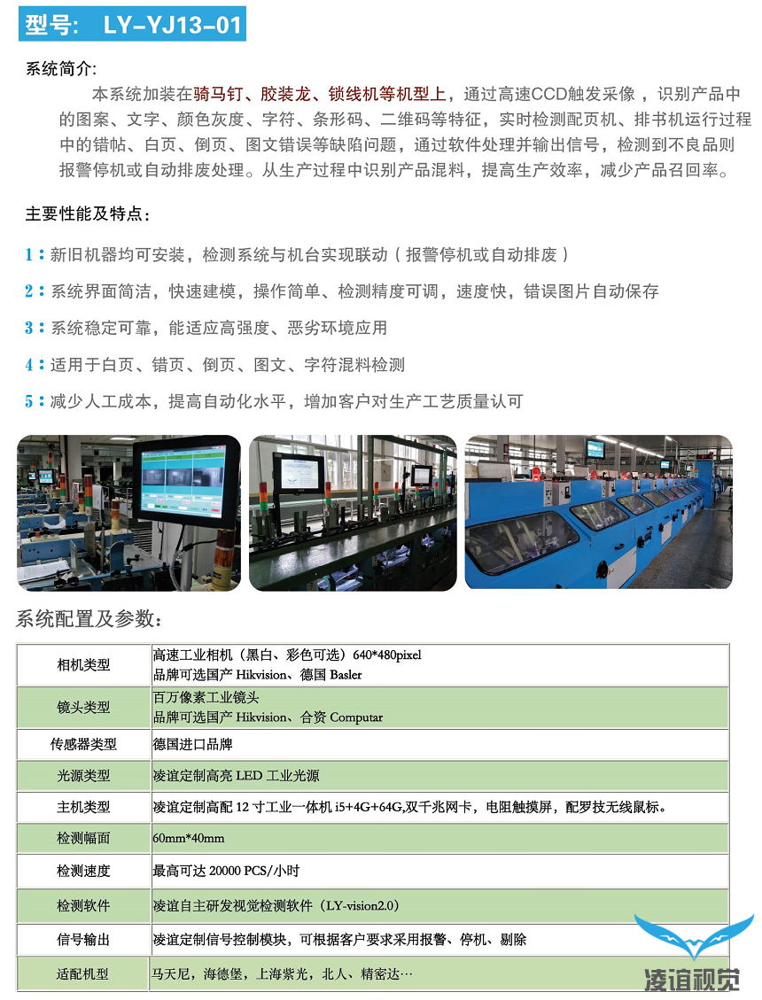 宿遷[印后裝訂加工]在線檢測(cè)錯(cuò)頁(yè)/倒置/印刷缺陷/圖文防混檢測(cè)設(shè)備由深圳凌誼視覺(jué)科技有限公司自主研發(fā),利用CCD視覺(jué)技術(shù)幫助江蘇地區(qū)印刷包裝企業(yè)低成本加裝視覺(jué)檢測(cè)設(shè)備解決生產(chǎn)過(guò)程中出現(xiàn)的錯(cuò)、漏、混料等問(wèn)題。